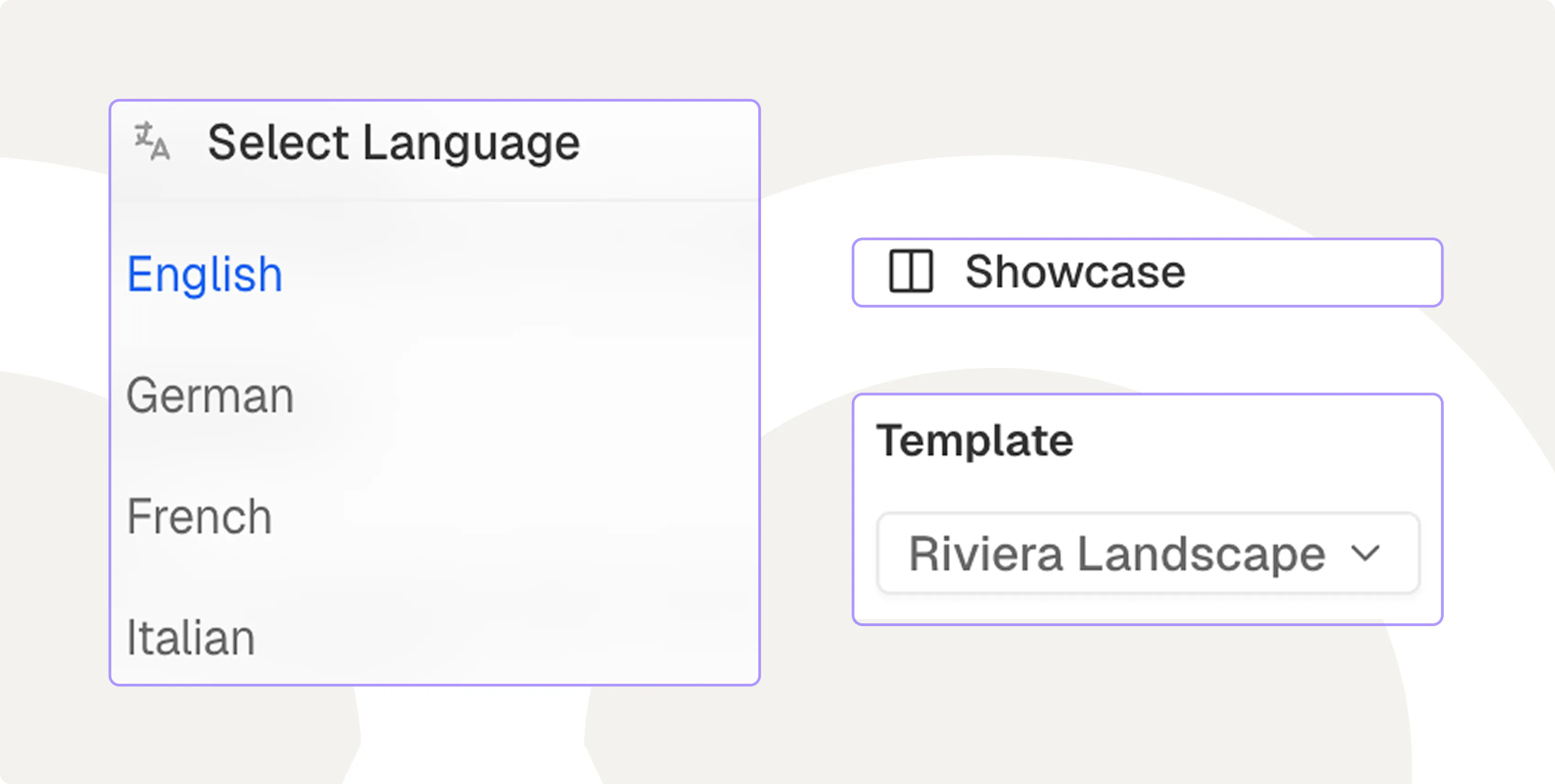 Activate multiple languages at once and create dedicated documentation for each. During document creation, simply select the desired language while keeping templates and content fully consistent. - Showcase Block
